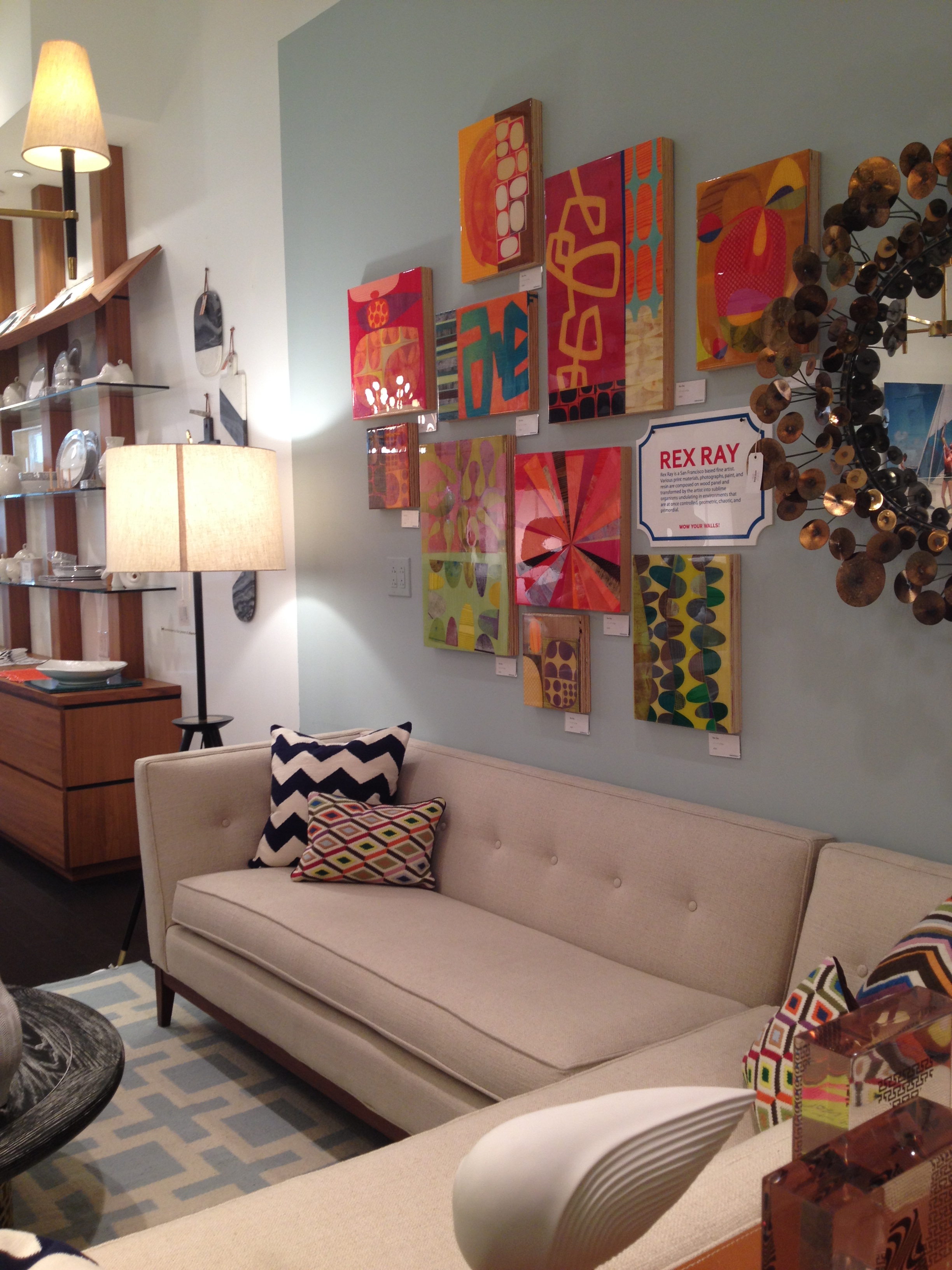 His design influences are fairly apparent as you explore the showroom, from the sculptural room divider in the image directly above, to the Rex Ray (iconic mid-century graphic designer) display a few images up.