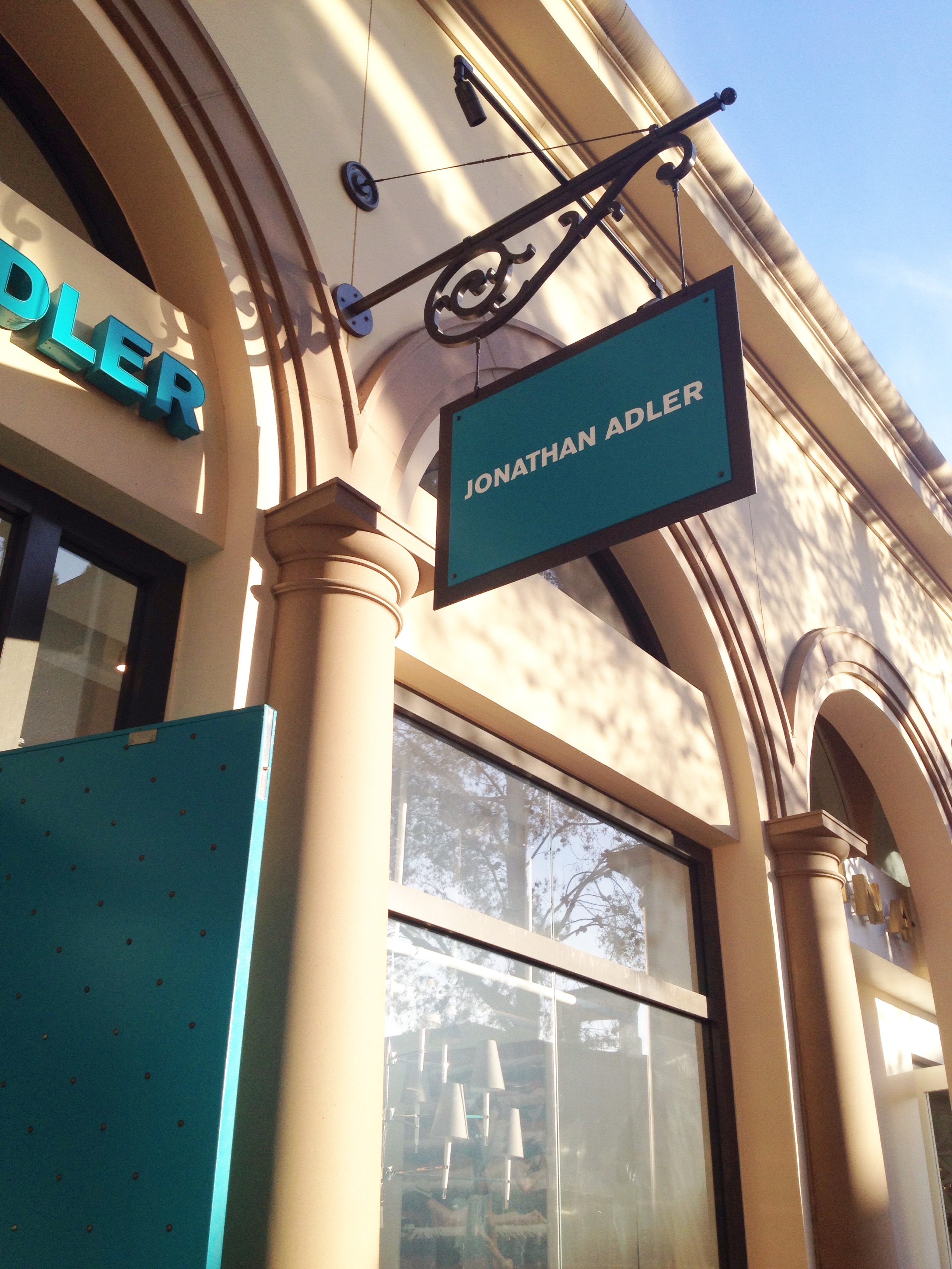 Did your heart go pitter-patter, ’cause mine did. In the 90’s, Jonathan Adler = Beautiful White Ceramic Pottery. Today, Jonathan Adler = Mega Design Mogul. He even had his own line of Toms shoes and sunglasses last year, nuff said. He’s everywhere, apparently, because there I was minding my own business just trying to people-watch in one of the best places to people-watch and I was smacked in the face with these über cute teal doors and impressive merchandising displays. Check it out!